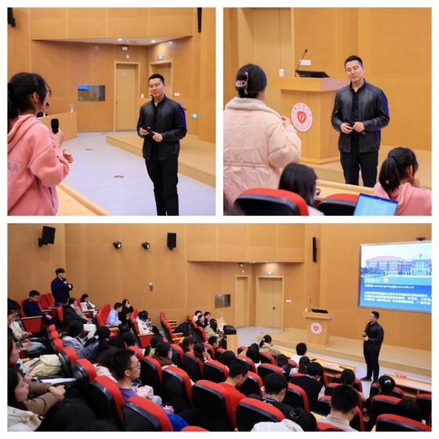 培训讲座由南京传媒学院播音主持艺术学院的吴昌明老师主讲。讲座中,吴昌明老师以“诉诸理性,塑造习惯”为主题,通俗易懂地从言之有物、言之有理、言之有情、言之有趣等四个维度,幽默风趣地介绍演讲技巧、语言表达、台风培养、即兴演讲等方面的专业知识与实践经验。吴昌明老师采用了理论讲解、案例分析、实战演练、互动交流等多种寓教于乐教学方式,以沉浸式体验帮助学生提升领悟力与表达力。