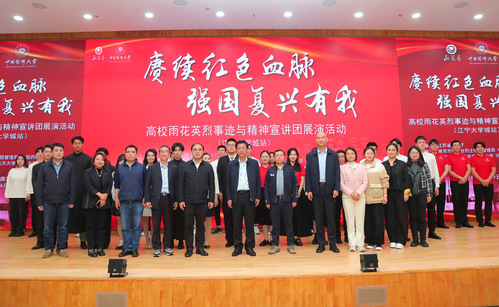 高校雨花英烈事迹与精神宣讲团是由雨花台和多所联盟高校共同发起,为讲好红色故事,传承弘扬雨花英烈事迹与精神而精心打造的青年大学生红色宣讲队伍。此次展演是高校雨花英烈事迹与精神宣讲团首次在江宁大学城片区演出。