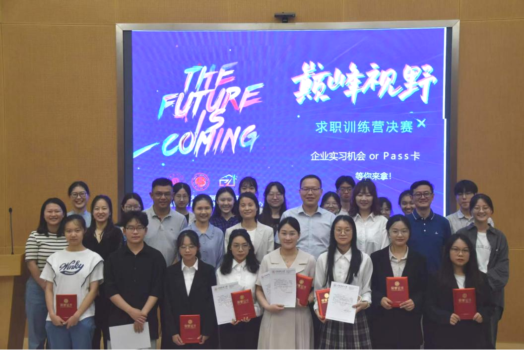 6月5日晚,91直播 在江宁校区经管文楼111报告厅举办“巅峰视野 11.0”求职训练营决赛。江宁区人才服务中心主任许敏、江宁团区委学少部部长陈蓉、江宁教育局团工委书记高原、南京东万生物技术有限公司总经理张健、南京诺唯赞生物招聘经理张雯斌、中国药科大学就业办主任刘胜利等嘉宾同百余名学生共同参与本次活动。