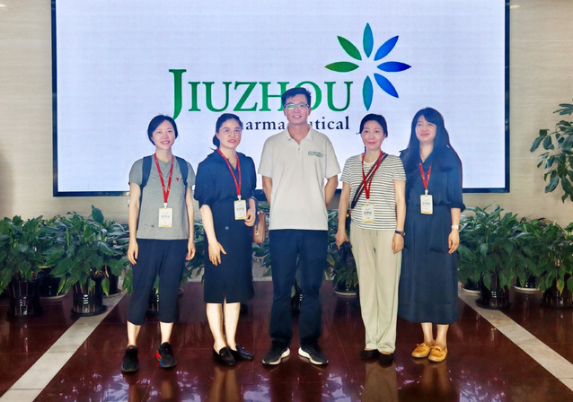 紧接着,教研室团队赴九洲药业考察。九洲药业专注于创新药定制研发、定制生产服务(CDMO),与900多家国内外知名企业建立了紧密的合作关系,全球业务遍及90多个国家和地区,对国际化业务人才有着独特的技术要求。在交流中,九洲药业相关负责人表示将积极提供实习岗位和就业机会,共同培养符合行业发展需求的高素质人才。