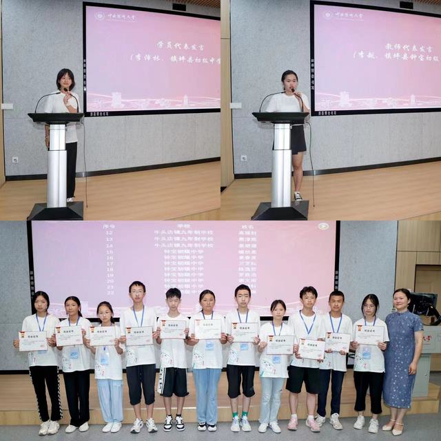 镇坪县初级中学李沛林作为学员代表发言分享了在本次夏令营中的所思所得。镇坪县钟宝初级中学李越老师作为中学生带队教师代表发言,她感谢91直播 精心组织了此次夏令营活动,并表示此次夏令营为镇坪县中学生们的未来成才之路起到了激励作用。其间,科学技术研究院副院长陈兰兰、镇坪县教体科技局职教中心主任熊静、镇坪县教体科技局人事股股长王丽为镇坪县中学生颁发结业证书。