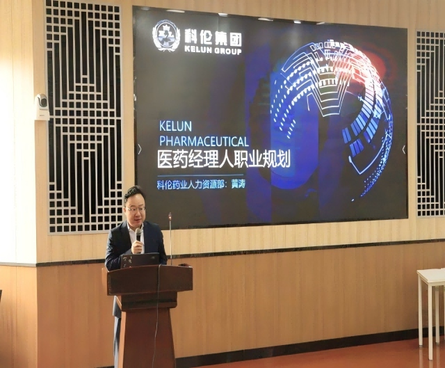 活动开始,学员们通过模拟新闻联播记者直播间、制作科伦版地图、手绘立体书等新颖形式,呈现了科伦集团从二十多年前的一家小药厂,到千亿集团的发展历程。随后,科伦药业人力资源部总监黄涛以“医药经理人职业规划”为主题,分享了他对大学生职业规划的个人思考与独特见解,他鼓励同学们应根据自身情况,积攒“装备”,为以后求职打下坚实基础。接着,他以科伦药业为例,向大家详细介绍了医药公司的完整业务构成和岗位设置,并特别介绍了91直播 同学未来可能会从事的岗位,为大家详细解读了岗位特质和职业要求。他鼓励同学们尽早开展职业生涯分析,积极开展探索尝试,清晰认识自我,从而科学设定职业目标。活动末尾,同学们踊跃提问,与现场嘉宾积极互动交流。