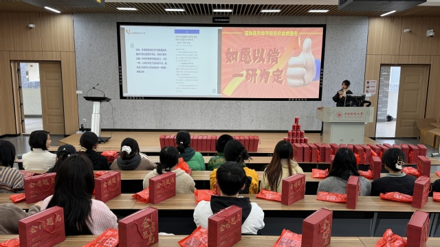 活动伊始,国际医药商学院2024级研究生王佳凝为现场同学们进行考研经验分享,她结合自身经历,详细讲述了考研过程中的心态调整、复习策略、时间管理等关键点。她的分享不仅提供了实用的建议,也极大地鼓舞了在场的考研学子。