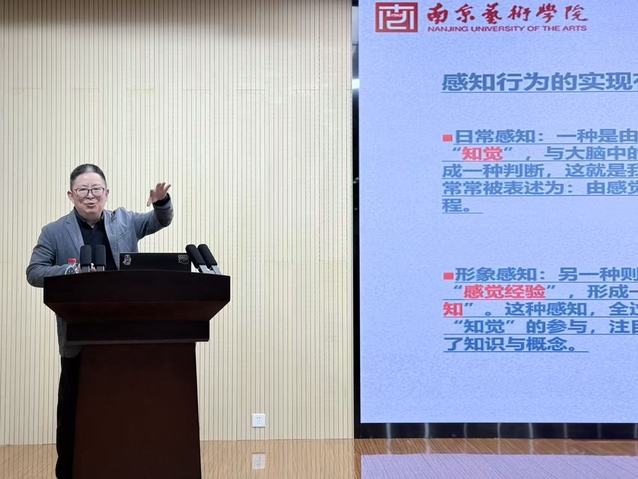 活动中,顾平指出,美育不应仅停留在口号或单一的艺术课程层面,其主要在于对“美感”的发现与捕捉。他从“美从何来”“审美感知”“为什么要依赖艺术”“审美感知觉如何养成”“如何捕获美感”等部分展开,以深厚的学理底蕴和生动的艺术实例,引导同学们思考美与自身的关系。他强调,艺术是“美感”最集中的表现,培养艺术感知觉,能够有效提升整体审美能力,而“美感”的捕获,依赖于自我姿态的调整与养成。