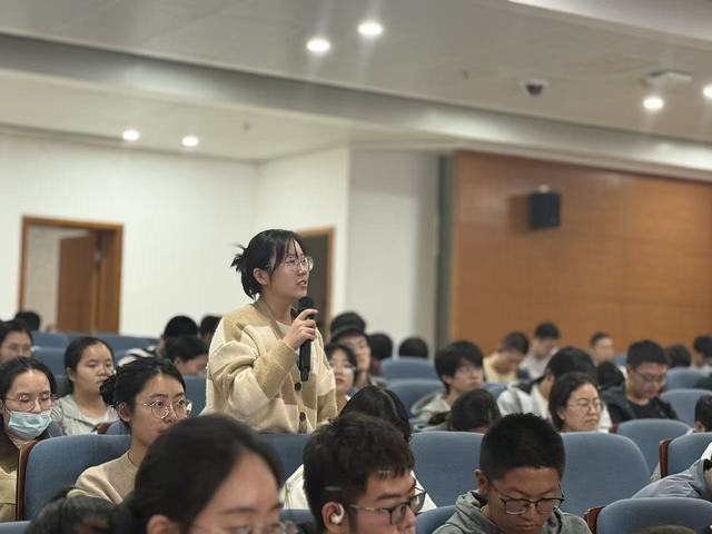 在互动环节,同学们结合自身学习生活和成长经历,就“专业学习中培养美感”“日常生活中沉淀审美经验”“美育与科学研究的互助”等话题与顾平展开交流。