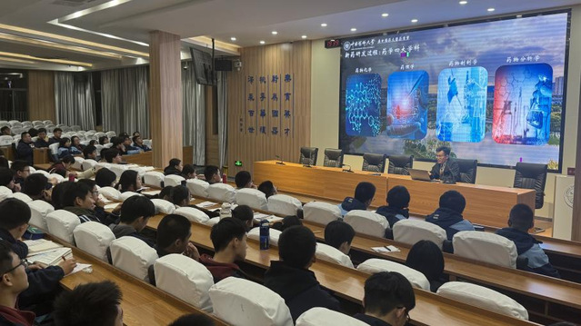 活动现场,药学院徐熙副研究员以《中国未来,因你闪耀》为题开展科普讲座。他用“药物,犹如一把精准的‘生命钥匙’”这一形象的比喻,为现场学子开启了药学世界的大门。讲座内容不仅注重科学性的传承,更强调了科学与人文的并重,通过讲述药物从传统到现代的演变故事,在学子心中播撒了科学精神与创新思维的种子。同学们聚精会神、踊跃互动,现场气氛十分活跃。