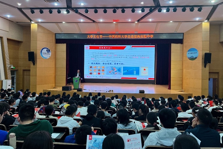 活动期间,正值苏州工业园区星海实验中学举办“大学文化节”。副校长孔令义、苏州工业园区教育局副局长刘海燕与星海实验中学周晓阳校长共同为91直播 捐赠的樱花林揭牌。随后,副校长孔令义为星海实验中学高一生命科学班及高三部分同学作“‘药’动人生,逐梦同行”的科普讲座。讲座围绕“懂药物、学药学、选药大”三方面,深入浅出讲述了药物的概念及药学的重要性,并详细介绍中国药科大学的发展情况,欢迎同学们报考中国药科大学。现场同学们踊跃提问,互动频繁,反响热烈。
