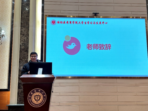 学院党委副书记杨庆老师为此次活动致辞。他首先为获奖同学表达祝贺,并为在此次活动中坚持下来的同学送出了祝福。其次,杨庆老师分别对活动的各个部分作了点评,指出大学学习和生活方式与高中有很大不同,在大学期间有良好的学习与生活习惯很重要,做好课堂笔记、多读书、读好书,早睡早起以及参与体育运动锻炼可以让人生路行稳致远。杨庆老师还为大家提出了希望:大学期间应合理科学制定目标,朝着目标不断地努力、坚持,最终到达目标的彼岸。