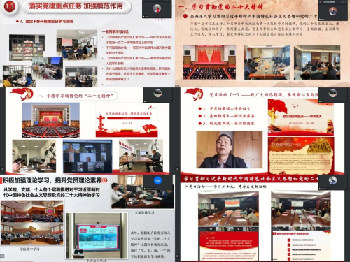 会上,学院5个教工党支部、1个博士生党支部、8个硕士生党支部、8个本科生党支部依次汇报,各支部分别围绕2022年党建工作完成情况、2023年党建工作计划、最佳党日活动三个方面进行了汇报,同时查摆党支部存在的问题,对存在的不足进行了详细分析,并提出了改进思路和努力方向。