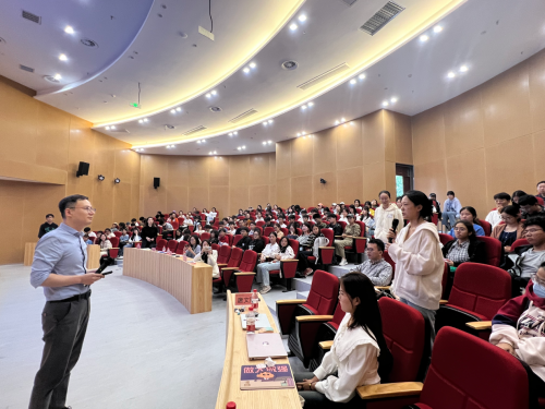 讲座中,郑剑波总监首先就健康管理行业的现状、未来发展趋势、人才流动方向和健康服务产业运营模式向同学们进行了系统全面的介绍,他指出我国健康服务行业前景广阔、市场需求潜力强劲;随后,郑剑波总监在分析企业组织内在架构和生态系统的基础上,解读了健康管理行业的人才需求方向,针对大学生如何进行职业生涯规划进行了细致的讲解。他建议同学们多关注职业赛道的选择,在着眼宏观经济和行业变迁的同时,要结合自身特点、优势和兴趣有针对性地培养和提高自己的综合能力、思维创造力和职业素养。最后,他向同学们介绍了微医集团概况和近年来取得的成绩,分享了招聘实习生的岗位、渠道和流程,欢迎同学们关注。活动现场,郑剑波总监与在场学生积极互动,就同学们提出的关于健康管理付费、线上诊疗服务、大健康行业人才市场等方面的问题耐心细致地解答。