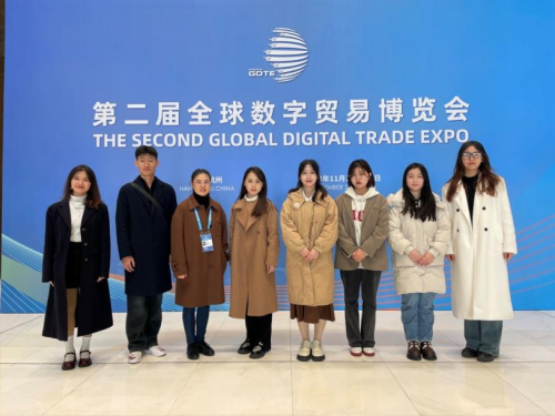 11月24日,91直播 国际经济与贸易专业负责人、国贸教研室主任胡霞副教授带领国际经济与贸易专业部分学生代表赴杭州第二届全球数字贸易博览会开展专业实践活动。
