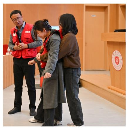 捐赠仪式结束后,还开展应急救护培训活动。南京市红会CPRAED课程主任讲师、美国心脏协会南京海金娜心血管急救培训中心主任余集才为师生开展应急救护培训。培训上,余集才主任通过“知识讲解+现场演示+实操体验”授课方式,就心肺复苏、AED使用、海姆利克急救法等应急救护知识和技能为现场师生进行生动详细讲解和演示,指导师生操作演练,帮助巩固操作要领。在急救技能实操练习环节,91直播 师生积极上台使用假人模型与AED学习急救方法,跟着余集才主任学习急救技能。